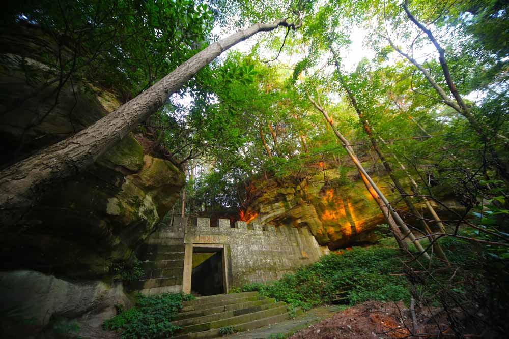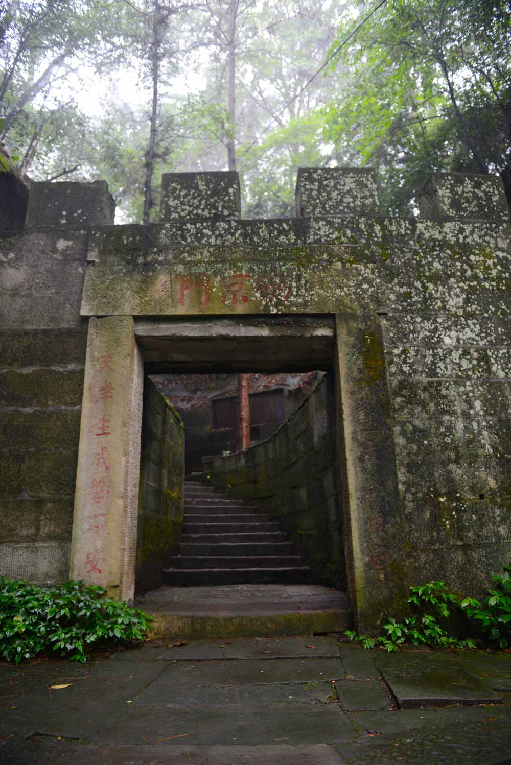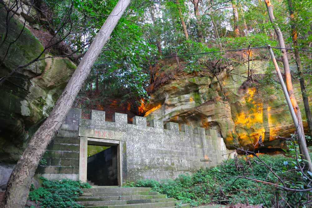 这儿的地势非常险要。左右两边是绝壁,中间有一座坚固的石门。这就是“南京门”—金城山寨的西门。据传唐天宝15年,“安史之乱”何滔镇守顺庆府(南充)遇兵变,退而据守在此,建立了金城山寨,并还在附近修建了“营盘寨”、“打鼓寨”、“顺天寨”等予以固守。当时何滔在此依山凭险修建了“南京门”。